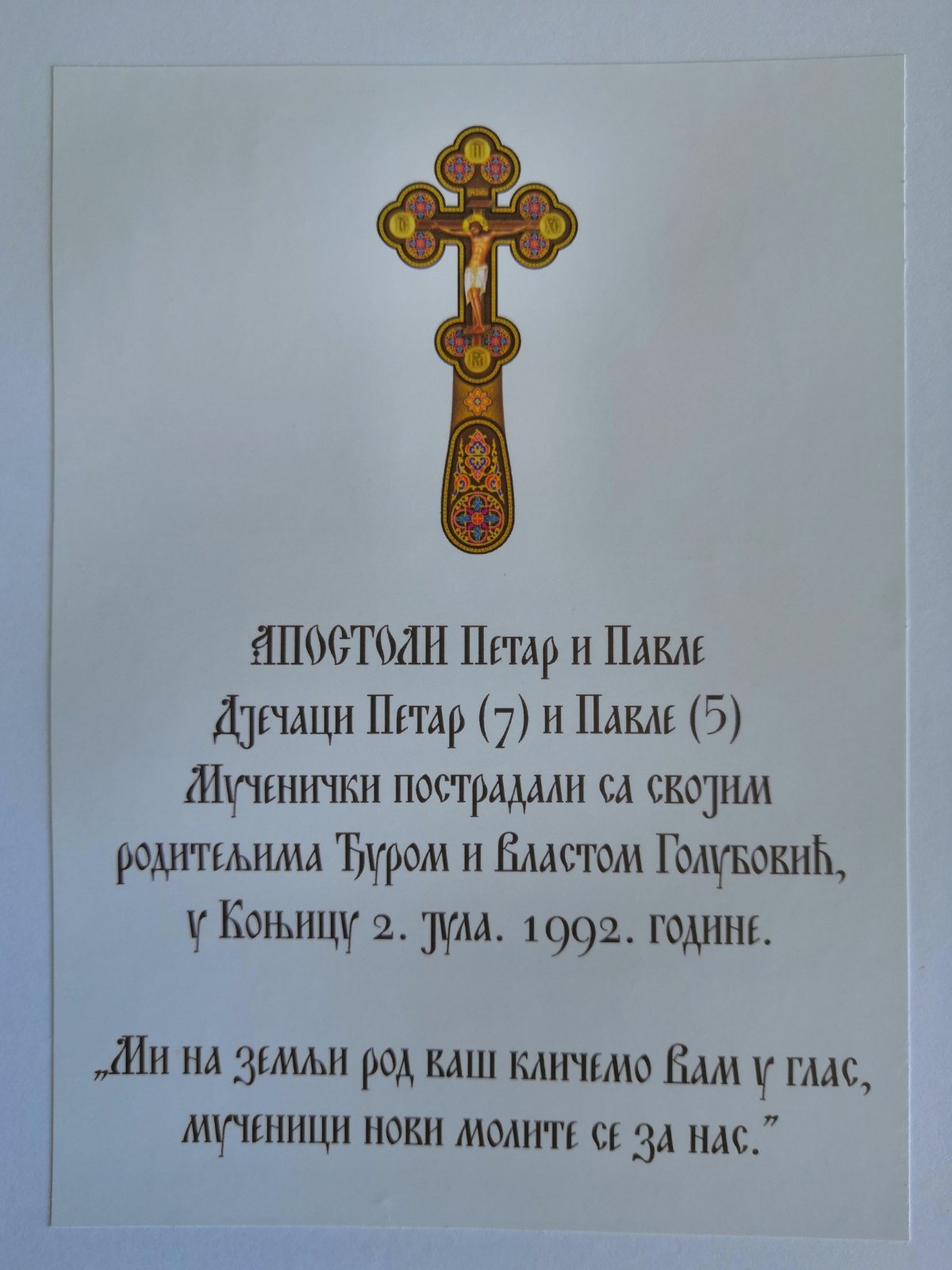 Икона на којој су апостоли Петар и Павле са дјечацима Петром и Павлом Голубовић admin 09/07/2020 ДА СЕ НЕ ЗАБОРАВИ И НЕ ПОНОВИ, Црква Leave a comment 1,331 Views Share Facebook Twitter Google + Stumbleupon LinkedIn Pinterest