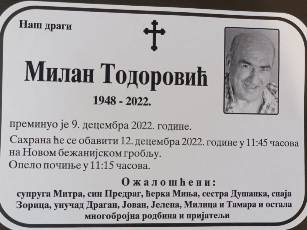 Ин Мемориам – МИЛАН ТОДОРОВИЋ