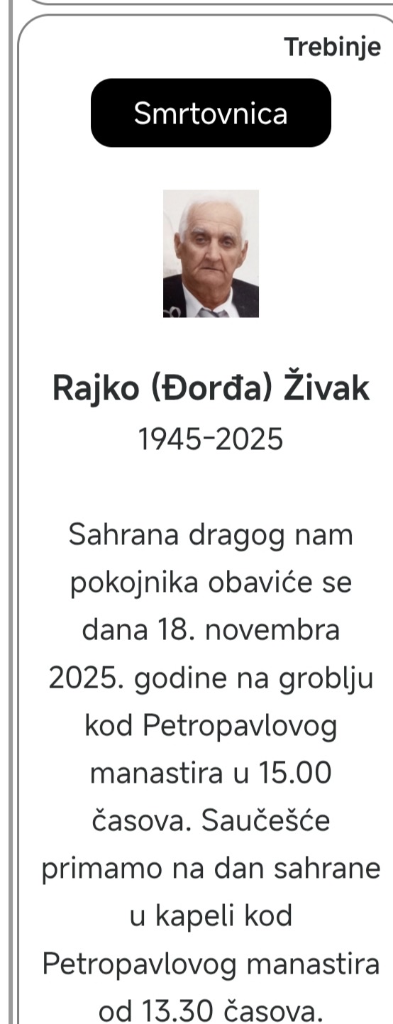 Ин Мемориам – Рајко Живак admin 12 сати ago Ин Мемориам Leave a comment 502 Views Share Facebook Twitter Google + Stumbleupon LinkedIn Pinterest