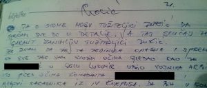 Неколико мјесеци прије смрти своја сазнања о акцијама, пљачкању, мучењима, убиствима и наредбодавцима описао је у својим забиљешкама на 50 страна А4 формата. Назвао их је дневником.