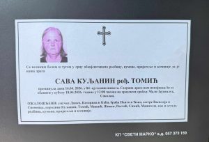 Ин Мемориам – Сава Куљанин рођ. Томић admin 2 сата ago Ин Мемориам Leave a comment 177 Views Share Facebook Twitter Google + Stumbleupon LinkedIn Pinterest